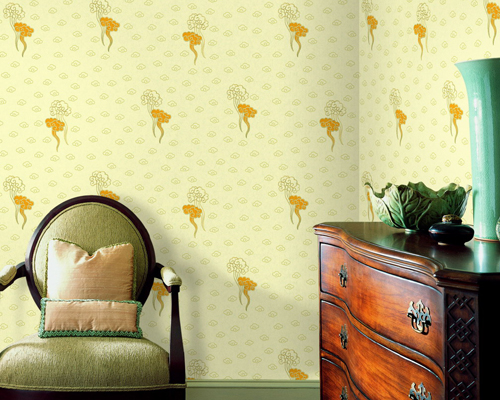潮流總是起起落落,今年,略帶現(xiàn)代元素的民族風(fēng)情再度成為潮流的寵兒。“祥云”以質(zhì)樸的泥土基調(diào)為主色調(diào),配以極富中國(guó)民族風(fēng)情的精致手工刺繡,讓云朵、花草回歸自然般的在墻面上輕舞,猶如置身于納西族村寨中,聆聽(tīng)山歌回蕩;淺金色的鈴鐺花刺繡,令人清心爽目,寧?kù)o、幽雅、淡泊的感覺(jué)油然而生;鑲有珍珠的繡花圖案,整齊散落在珠光銀白基調(diào)的墻紙上,剔透晶瑩,洋溢著東方式內(nèi)斂而純潔的浪漫情懷。