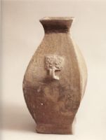 方口平唇,鼓腹,假圈足底。腹部有兩個(gè)鋪首耳。鈁是西漢中期以前江浙一帶的一種仿青銅器制品,在墓內(nèi)往往與同是仿青銅器的鼎、敦、壺、瓿形成組合,至西漢后期基本消失。