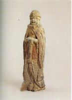 甲胄等部位飾以朱彩。此俑高鼻深目,具有鮮卑族的特征。北魏時(shí)武士俑,其造型、服飾大多相同,或握劍,或按盾,無不形貌威猛,蘊(yùn)涵著威武和強(qiáng)悍的性格。
