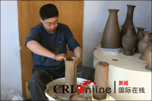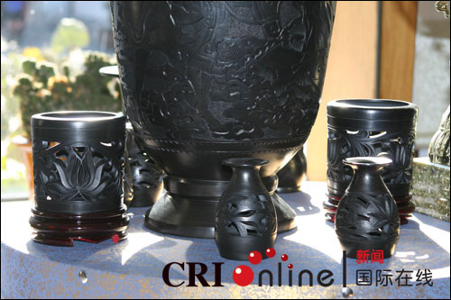 在展廳里,各色陶器琳瑯滿目,其品種有瓶、著、缽、鼎、筒、爐、罐、文具等,造型美觀,古色吉香,漆黑光亮。走進工作間,記者了解到黑陶的制作流程。勃利黑陶是利用東北黏質(zhì)土經(jīng)過濾、拉型、雕刻、壓光、燒制等現(xiàn)代工藝和傳統(tǒng)陶瓷工藝生產(chǎn)加工而成。據(jù)制作人員介紹,一件純手工黑陶制品要用三四天時間才能完成,是家庭裝飾和藝術收藏珍品,具有很高藝術價值。