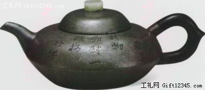 清代道光年間,社會(huì)上出現(xiàn)了鑲包金屬及嵌玉等質(zhì)的紫砂茗壺。據(jù)云,此法可起美化壺的作用,且有助于壺的保溫。其實(shí),這類茗壺大都是真舊紫砂壺,由于原壺部分破損,或把、或嘴,或蓋打破遺失,為掩蓋缺陷,而用金屬、玉石等材料彌補(bǔ),既可拋光,又可刻上書畫、詩詞以增雅興。