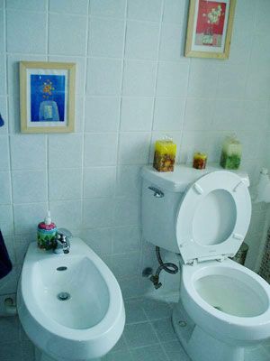 抽水馬桶的沖水槽上方是用廁時(shí)達(dá)不到的地方,我們可以利用此空間做一吊柜,深度約15厘米,才不致給人造成不便。柜內(nèi)可放置衛(wèi)生紙、手巾、洗潔劑、女性衛(wèi)生用品等,也可在下部做成開放式,放些綠色植物裝飾。