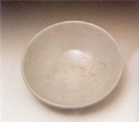圓形侈口,唇外捲,淺腹,碗壁下斂呈四十五度角,平底,底中心凹入,形成玉璧足。器施白色釉,釉色純凈潤澤,胎土白而細潔,胎骨堅硬、細密、厚重,瓷化程度較高,是典型的河北邢窯產(chǎn)品。