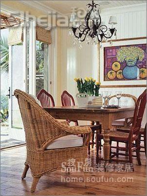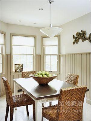 一張看似呆板的白底木面餐桌也能給餐廳帶來(lái)意想不到的活潑效果,簡(jiǎn)單的長(zhǎng)方桌搭配上藤條編制的座椅,使餐廳充滿了原始自然的味道。