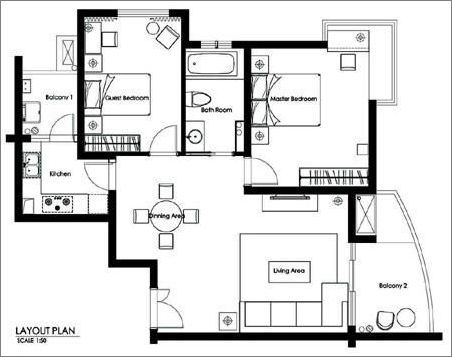 設(shè)計首先考慮的是空間的使用率。在88平方米內(nèi)的空間里,功能區(qū)劃分為兩個臥室、一客廳、一餐廳、一衛(wèi)生間和一個廚房,還有一個陽臺,實(shí)際使用率達(dá)到95%,可以說對每一平方米都物盡其用。