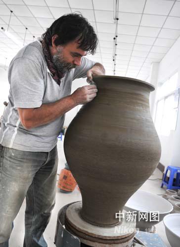 圖為希臘陶藝家柯里斯道斯正在進(jìn)行創(chuàng)作。作 者:閆盛霆