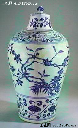 明  永樂(lè)(1402年-1424年)景德鎮(zhèn)窯青花竹桃紋帶蓋梅瓶