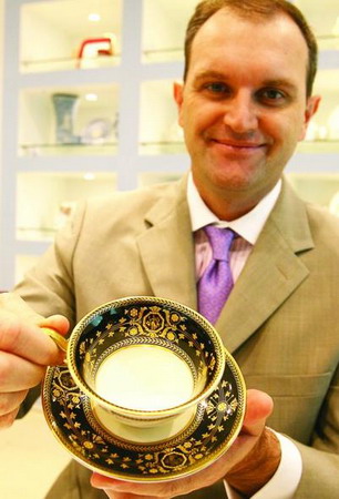 這位專程到蘇的“老外”,是英國陶瓷之父JosiahWedgwood的第八代傳人。已有近 250年歷史的英國Wedgwood是國際居家精品的領(lǐng)導(dǎo)品牌,其代表產(chǎn)品陶瓷餐具一直被歐洲皇室貴族等選用。美羅商城是其在內(nèi)地市場開設(shè)的第19家專賣店,也是其在江蘇市場開設(shè)的首家專賣店,上柜產(chǎn)品包括杯碟、咖啡壺、花瓶等20余個品種的高檔瓷器。“這套1.3萬元的茶杯碟是Wedgwood中的頂級精品,目前在全國市場不超過10套”,據(jù)介紹,Wedgwood不少品種都由歐洲能工巧匠手工制作,售價高達1.3萬元的牡丹形茶杯碟制作時間長達1個月,共要燒制12次,上面的金粉彩繪采用24K金為原料,每只杯碟的彩繪都需工匠繪制1000余筆才能完工。