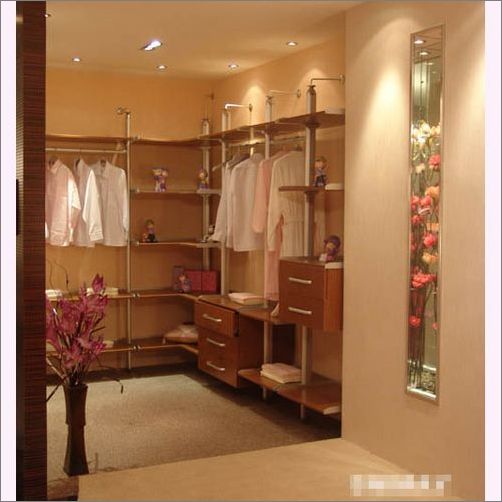 當換衣空間只占某個房間的一角時,它所起到的功能還要附加上對這個房間的裝飾作用。由于房間注重統(tǒng)一的風格,因而換衣空間的家具選擇必須符合整體的要求,還要盡量地留出一些空間來擺放些這個房間所需要的其它用品。