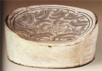 圖片名稱: 磁州窯白釉劃花水波游魚枕