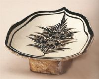 圖片名稱: 磁州窯白地黑花如意形臺座枕