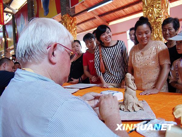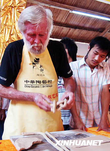 10月19日,在江西省景德鎮(zhèn)市新都陶瓷園中華陶藝村內(nèi),來(lái)自世界各地的陶藝精英現(xiàn)場(chǎng)展示陶藝制作。
