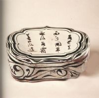 圖片名稱: 磁州窯白地黑花如意頭開詩(shī)文枕