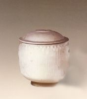 白釉蓋缽,敞口直壁,圈足。蓋面隆起為鑲?cè)胧。通體施白釉,外壁剔刻出繁密的菊瓣紋。此缽造型端莊古樸,紋飾繁密又自然流暢,是一種不可多得的白釉器。