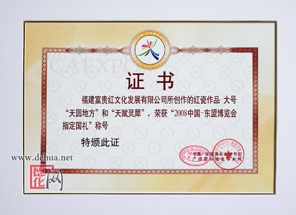 10月13日,來自中國瓷都·德化的名瓷,有“千窯一寶,十窯九不成”之稱,在專業(yè)收藏領(lǐng)域被譽(yù)為“盛世國寶”的“富貴紅”高溫紅釉瓷,將作為2008中國-東盟博覽會(huì)指定的國家領(lǐng)導(dǎo)人禮品,禮贈(zèng)前來參加第五屆中國-東盟博覽會(huì)的東盟客人,這是記者今天從新聞發(fā)布會(huì)上獲得的消息。