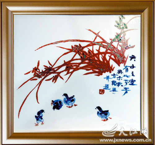 在陶瓷藝術(shù)方面,他把景德鎮(zhèn)的傳統(tǒng)瓷畫工藝和中國(guó)水墨畫進(jìn)行了全新的融合,兼容并蓄,把精妙的書法線條、傳統(tǒng)中國(guó)花鳥畫的寫意及潑墨、潑彩方法巧妙地融入瓷畫中,使其作品既有瓷藝畫的工藝性,更具中國(guó)畫的寫意性、抒情性,尤其表現(xiàn)“梅蘭竹菊四君子”極為傳伸。他的瓷藝畫,既有瓷畫的傳統(tǒng)美,更具有中國(guó)畫的寫意美,形神兼?zhèn),極富個(gè)性。