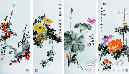 春夏秋冬釉上四屏瓷板(瓷畫)