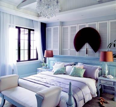 實用主義和浪漫主義可以在臥室中并存,藍(lán)白色調(diào)浪漫而沉靜,藍(lán)色清透與白色的安靜相互映襯,有著海一般的夢幻感覺,優(yōu)雅的配色似如歌的行板,浪漫溫馨,裝點出如水一般純凈又內(nèi)涵豐富的臥室氛圍。