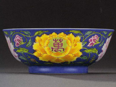 (雍正御制琺瑯彩藍(lán)地纏枝牡丹紋“萬壽長(zhǎng)春”碗 )