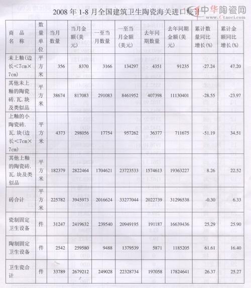 2008年1-8月全國(guó)衛(wèi)生陶瓷海關(guān)進(jìn)口統(tǒng)計(jì)
