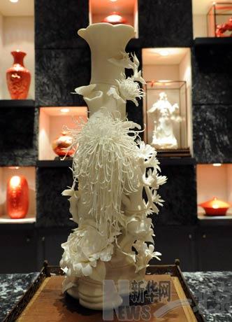 這是北京“富貴紅”專賣(mài)店里與“富貴紅”相媲美的白色花瓶(11月14日攝)。