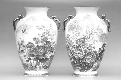 作品從器型、畫面、胎質(zhì)和釉色等整體來看,這對龍鳳瓷達(dá)到了中國重工粉彩藝術(shù)的歷史新水平。在此次博覽會(huì)上的首次亮相,獲得了評委們的高度贊嘆,被評為金獎(jiǎng)選送北京參展,作為向改革開放30周年獻(xiàn)禮的重要工藝美術(shù)珍品。
