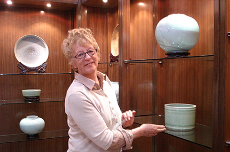 世界有名的陶藝家珍妮特·曼斯菲爾德女士在龍泉青瓷博物館參觀。