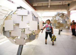 圖為中國陶瓷產(chǎn)業(yè)總部基地內(nèi)獨特設(shè)計的瓷磚潮流新品