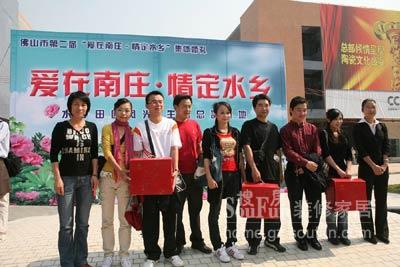 2008年11月16日,佛山市第二屆"愛(ài)在南莊·情定水鄉(xiāng)"集體婚禮--水鄉(xiāng)田園風(fēng)光·生態(tài)總部基地在中國(guó)陶瓷產(chǎn)業(yè)總部基地現(xiàn)場(chǎng)圓滿(mǎn)舉行。數(shù)十對(duì)新人,南莊鎮(zhèn)黨委委員王斌,南莊鎮(zhèn)宣傳辦主任徐錦棠,南莊鎮(zhèn)文化站站長(zhǎng)甘小平等領(lǐng)導(dǎo),陶瓷藝術(shù)家工藝美術(shù)師、佛山市工藝美術(shù)家創(chuàng)作院副院長(zhǎng)黃強(qiáng)華,中國(guó)陶瓷產(chǎn)業(yè)總部基地相關(guān)負(fù)責(zé)人,以及眾多媒體參加了此次活動(dòng)。此外,活動(dòng)還吸引了慕名前來(lái)的80多位攝影愛(ài)好者的熱情參與。