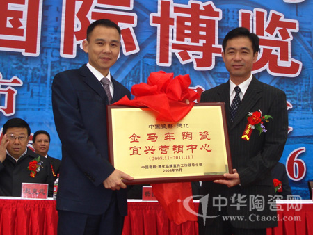 福建省德化縣縣長(zhǎng)李輝躍為金馬車宜興營(yíng)銷中心授牌,副縣長(zhǎng)授牌黃耀坤介紹了德化陶瓷發(fā)展及歷史。
