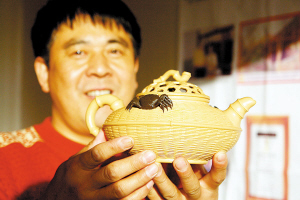 在昨日開幕的中華藝術品收藏博覽會上,其作品“報春壺”曾被用來招待英國女王伊麗莎白二世的紫砂大師錢建榮,攜帶著自己的眾多精美作品精彩亮相。他將自己在2007年中國東莞茶葉博覽會上榮獲金獎的名作“江蘇明珠”帶至展會,與天津的收藏者們一起交流分享紫砂文化。