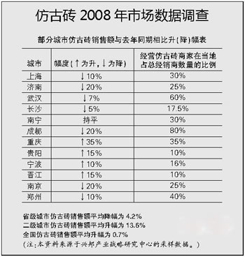 市場(chǎng)形勢(shì)不斷變化,建陶產(chǎn)品也在經(jīng)歷品類和品牌的更迭。今年大環(huán)境形勢(shì)下,一些企業(yè)陷入了嚴(yán)寒,但一些企業(yè)卻又如沐春風(fēng)。歲末年終,我報(bào)對(duì)全國(guó)各陶瓷生產(chǎn)基地和產(chǎn)品銷售市場(chǎng)作了大量調(diào)查,推出了“2008陶瓷行業(yè)大總結(jié)”系列報(bào)道,以資企業(yè)掌握產(chǎn)品的發(fā)展趨勢(shì)、了解品牌的最新格局。本期將首先推出仿古磚系列。