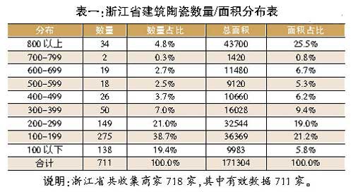 從陶瓷店數(shù)量/面積分布來看(見表一、表二),200平方米以上陶瓷店數(shù)量占比超過40%,而800平方米以上大店數(shù)量僅面積占比就超過25%,可見建陶大店經(jīng)營在浙江二、三級市場也日益占據(jù)主流。除了諾貝爾、斯米克、亞細(xì)亞等品牌外,宏陶、薩米特、王者、格萊斯、馬可波羅、新中源等佛山品牌也齊聚這里。
