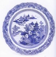圖片名稱: 青花山水樓閣人物紋花口盤