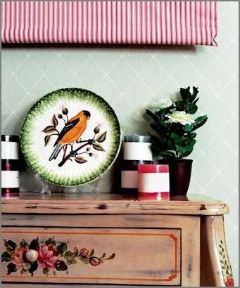 布置窗的時(shí)候,不僅要注意色彩和諧,也要講究風(fēng)格的統(tǒng)一。梳妝臺(tái)上的手繪玫瑰圖案跟粉色條紋棉布窗簾在色彩上形成和諧呼應(yīng),手繪瓷盤(pán)典雅而不失活潑,為點(diǎn)睛之筆,烘托出一派英式鄉(xiāng)村風(fēng)格,與室內(nèi)整體格調(diào)完美統(tǒng)一。餐廳的窗下,最適合布置成這樣隨意溫馨的小景