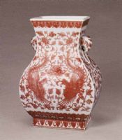 圖片名稱: 釉里紅穿花鳳紋象耳方瓶