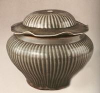 圖片名稱: 龍泉窯青釉條紋荷葉蓋罐