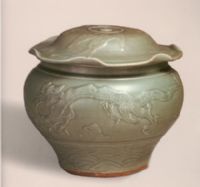 圖片名稱: 龍泉窯青釉貼花龍鳳紋蓋罐