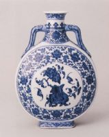 圖片名稱: 青花桃蝠紋如意耳扁壺