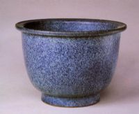 花盆折沿,深腹,圈足。通體施青金藍(lán)釉。