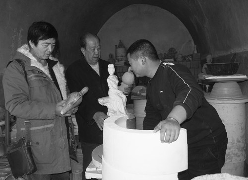 清水河縣4家的陶瓷廠都干過(guò),前后培養(yǎng)了30多個(gè)徒弟,有著50多年燒制陶瓷經(jīng)驗(yàn)的年屆古稀的張選(中)和54歲的李大龍(左)師徒倆,還完好地保存著許多模具,希望有一天它們能派上大用場(chǎng)。