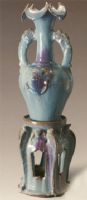 圖片名稱(chēng): 鈞窯天藍(lán)釉貼花獸面紋雙耳連座瓶
