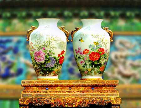 重工粉彩自明朝誕生以來,一直是皇室彰顯國力與財力的“重器”,規(guī)格至高無上,價值無以倫比。藏界有“千萬身家,換不回重工粉彩一件”的說法。50年來,由于種種原因?qū)е鹿に囀,今年是改革開放30周年,又將迎來祖國60年華誕,盛世當以重器銘記,景德鎮(zhèn)征求多方意見決定:一定要以獨具王者風范的國瓷來紀念這個時代,一致決定選用斷代50年的宮廷重工粉彩絕技,因為只有它才能展現(xiàn)祖國60年來的厚重與偉業(yè)!由景德鎮(zhèn)兩大制瓷機構(gòu)景德鎮(zhèn)瓷局和文物局聯(lián)手督造,一款大師創(chuàng)作、工藝絕倫、胎質(zhì)超群、創(chuàng)意驚人的“重工粉彩王”復興成就瓷歷時3年終于艱難問世!專家稱:“這是千年景德鎮(zhèn)的里程碑,是新中國瓷藝的巔峰!”