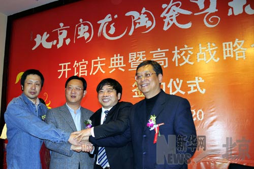 12月20日,中央美術學院、清華大學美術學院、景德鎮(zhèn)陶瓷學院與北京閩龍?zhí)沾伤囆g館簽署了戰(zhàn)略合作協議書。雙方將積極探索高等院校陶瓷創(chuàng)意設計能力與陶瓷企業(yè)實踐相結合的發(fā)展模式,力求使高校的陶瓷原創(chuàng)設計通過陶瓷企業(yè)的論證,快速投入應用和市場營銷,從而形成具有自主知識產權的中國陶瓷制品。