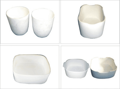 我們就是在這種形勢下,研制生產(chǎn)了低膨脹微晶坩堝,此坩堝是高溫熔煉燒結(jié)的無機非金屬材料,純度高、質(zhì)地微密、表面光潔、膨脹系數(shù)為0±0.5×10-6(很小)。因此,在反復(fù)使用過程中,堝體不隨溫度的升降而發(fā)生熱脹冷縮的變化,因而不易開裂、剝落和粉化、污染灼燒物,使用次數(shù)因行業(yè)不同,一般在100-300次。這些優(yōu)良性能的形成,主要采用了先進(jìn)的微晶技術(shù),選用了優(yōu)質(zhì)高純原料,合理的配方及特殊的工藝,使各種化學(xué)成分在高溫中熔合成膨脹系數(shù)小,顆粒細(xì)的晶體,且均勻的與其它成分熔為一體而成。用此材質(zhì)所制的坩堝經(jīng)市場磨合,就以“純度高、壽命長、重量輕、容積大、表面光潔、不易污染灼燒物、節(jié)約能源、降低坩堝消耗、減少拋失量和操作強度”等優(yōu)良性能,很好的滿足了用戶提高質(zhì)量、降低成本,獲得更好經(jīng)濟(jì)效益的愿望,受到了贊譽和歡迎。