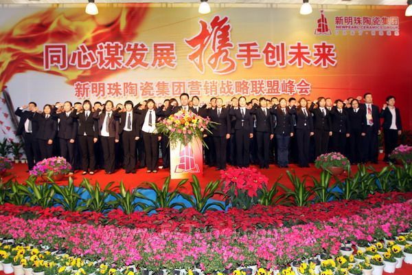 在激昂澎湃的《中國(guó)新明珠》進(jìn)行曲中,“同心謀發(fā)展.?dāng)y手創(chuàng)未來(lái)——新明珠陶瓷集團(tuán)營(yíng)銷戰(zhàn)略聯(lián)盟峰會(huì)”拉開(kāi)了帷幕——一支由新明珠的近3000名經(jīng)銷商總代理以及企業(yè)全體人員共同點(diǎn)燃的奮進(jìn)之火燃燒著這個(gè)冬日這支火焰正以燎原之勢(shì)向著這個(gè)冬季的終點(diǎn)席卷而去……