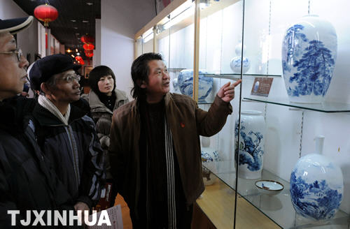 28日,“景德鎮(zhèn)陶瓷藝術(shù)家劉敏青花瓷作品展”在南開(kāi)區(qū)迎水道天津民間藝術(shù)展示中心展出。