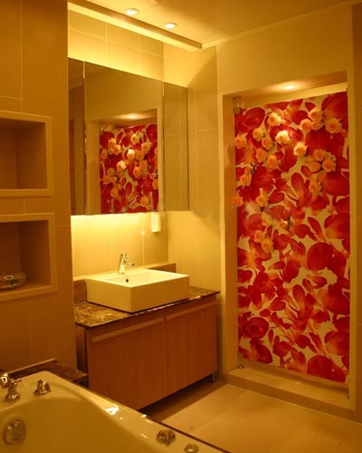 現(xiàn)在,你如果有一份羅曼蒂克的心境,不妨嘗試一下陽光下的衛(wèi)浴間。給衛(wèi)浴間的窗子配上兩道簾子,一層是朦朧的白紗,一層是彩色布藝。在陽光明媚的下午,躺在舒適的按摩浴缸中,讓陽光透過白紗灑在身上,享受一種別樣的溫暖。你也可以用百葉窗替代布窗簾,隨著戶外光線的變幻改變百葉的角度。