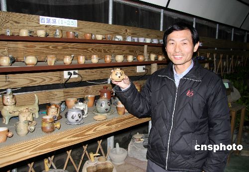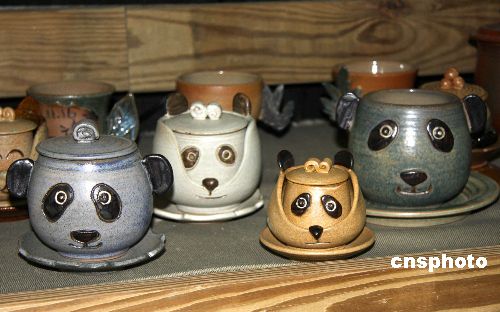 1月3日,臺(tái)北縣深坑鄉(xiāng)杯與壺博物館展示陶藝新作“熊貓杯”。這些作品為該博物館館長(zhǎng)吳九巖所創(chuàng)作。