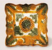 圖片名稱(chēng): 三彩釉印牡丹花方碟